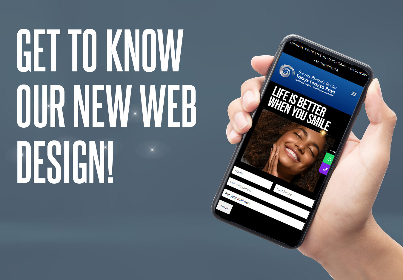 On the new Sonrisa Perfecta Dental page, you will first see the form for you to leave your contact information. If you prefer, you will have buttons to communicate by WhatsApp or call us by phone. No matter where you are in the world, we will always be ready to address your concerns and explain everything you want to know about the procedures.